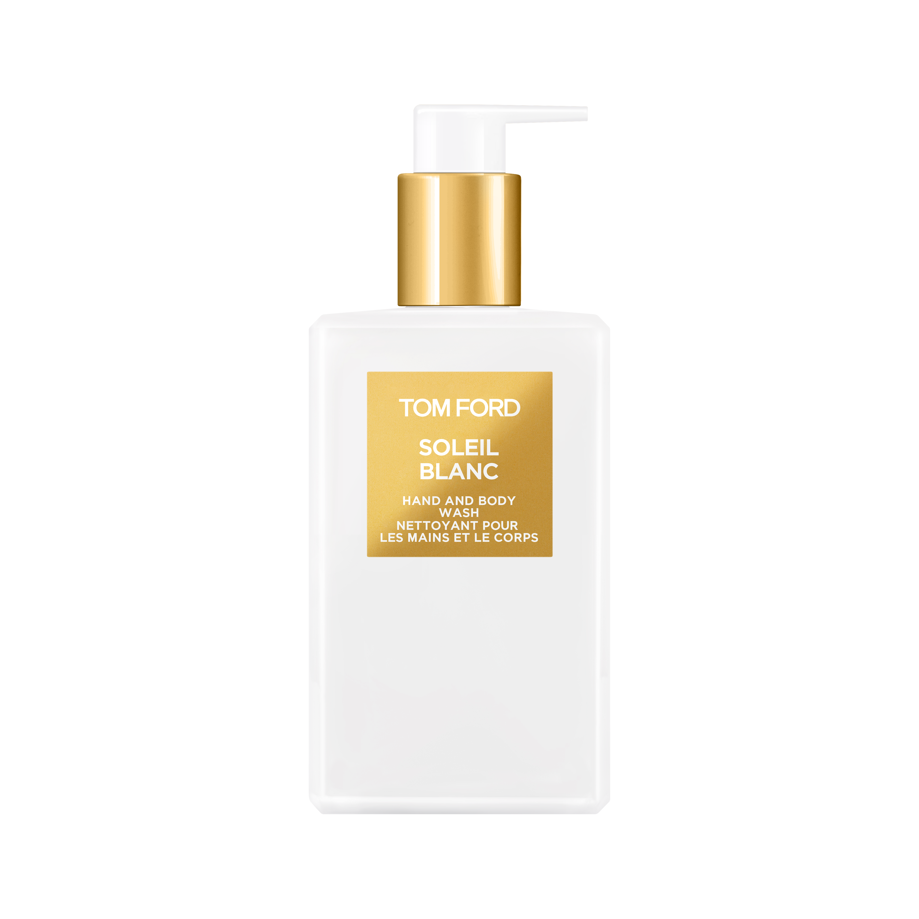 A lathering gel cleanser infused with the floral amber Soleil Blanc scent.